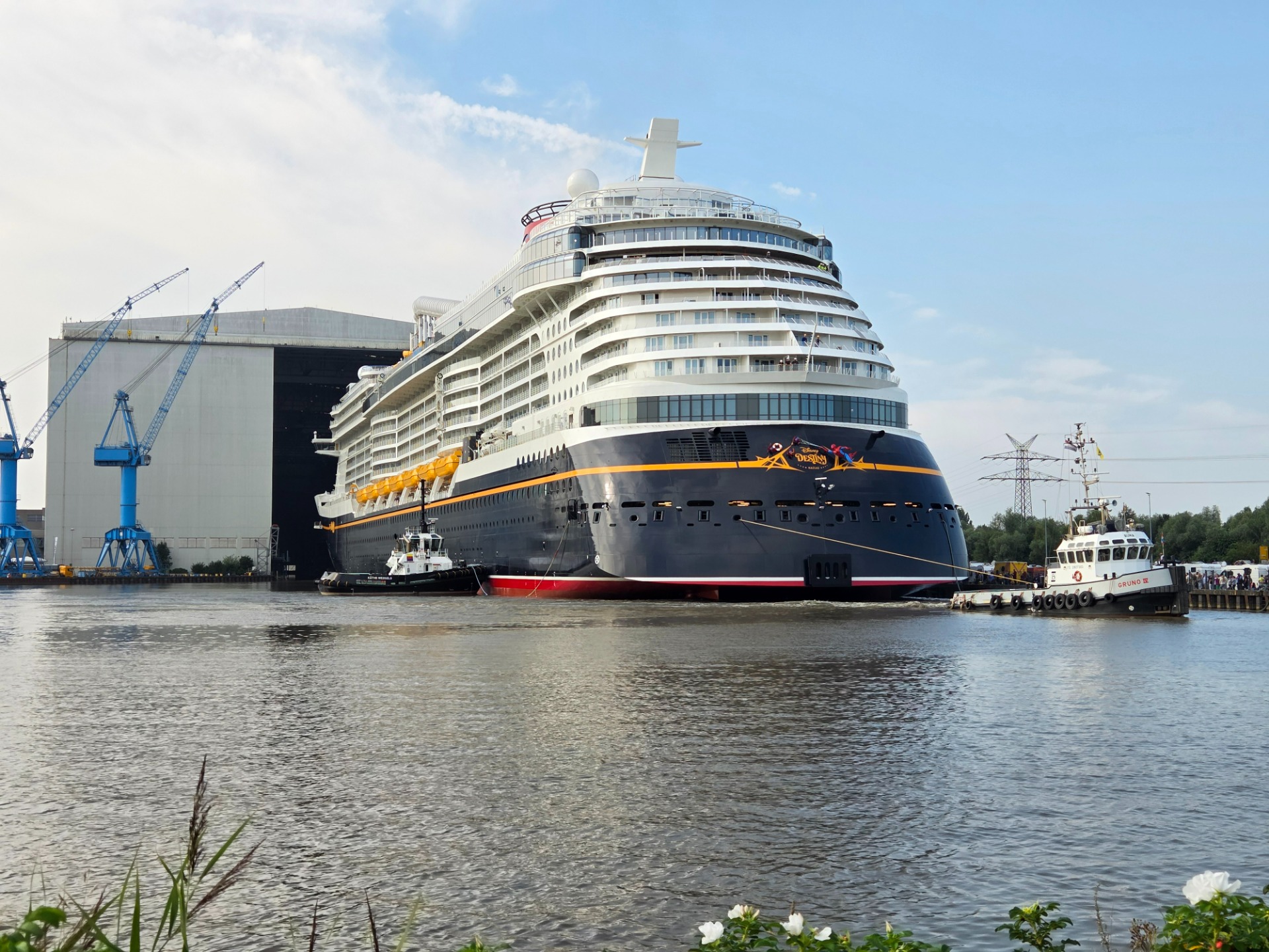 Wenn ein neues Kreuzfahrtschiff die Halle der Papenburger Meyer Werft verlässt, dann lockt dieses Ereignis immer zahlreiche Zuschauer an. Ist es dann auch noch ein Schiff der Disney Cruise Line, dann erwartet die Kreuzfahrtfans ein ganz Besonderes Spektakel. Am vergangenen Samstag war es wieder so weit. Die Disney Destiny wurde ausgedockt.